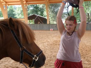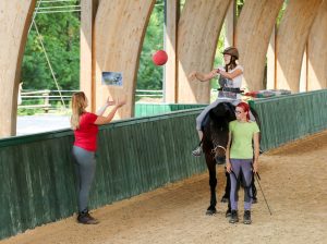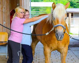 PEDAGOŠKO JAHANJE – Terapija s pomočjo konja obsega dejavnosti ob konju, s konjem in na konju. Jahanje in opravila vezana na pripravo konja spodbujajo motorični, kognitivni, čustveni razvoj in omogočajo socialno učenje. Konj se je pokazal kot odličen motivator pri doseganju ciljev.